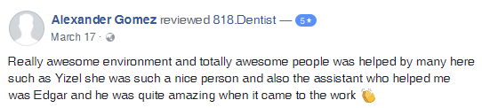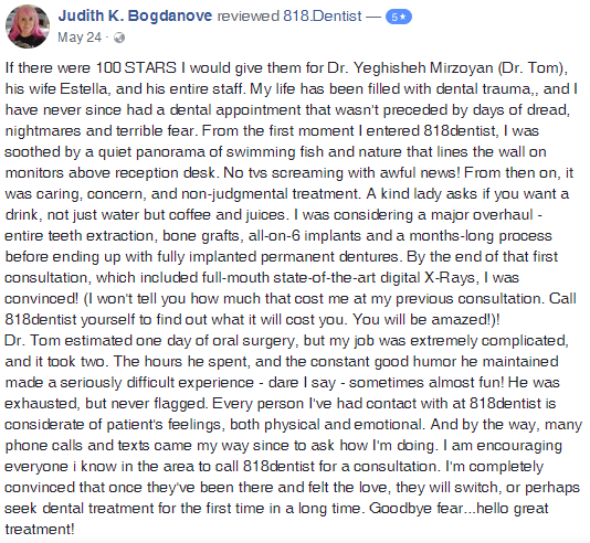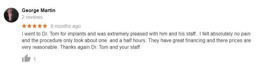 I had a tooth that was fractured so I had an extraction that needed to be done as well and that was interfering with how I was chewing. It's also very discomforting. I ended up needing multiple implants. It was an amazing experience because he makes you feel comfortable and makes you laugh during the whole process. We took care of everything and I'm very happy with my results. He was very meticulous, precise with everything he does so we went through multiple shades and he did make sure that everything matched. Everything has changed tremendously since I've had my implants put in!